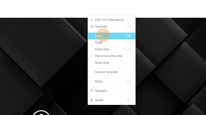 5. Right-click the grid icon to reveal a drop-down menu from the Elementor editor. From this menu, you can perform actions such as copy, paste, duplicate, etc. For now, click on ‘Copy.’
