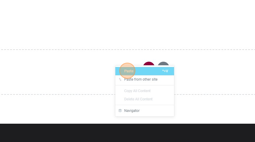 7. On the “New” page, right-click on the ‘Drag widget here’ section and select ‘Paste’. This will paste the header section that you copied from the existing GreyboxPro page onto your “New” page.